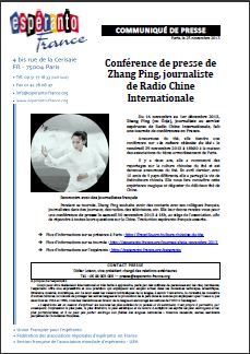 25 novembre 2013 – Conférence de presse de Zhang Ping, journaliste de Radio Chine Internationale
