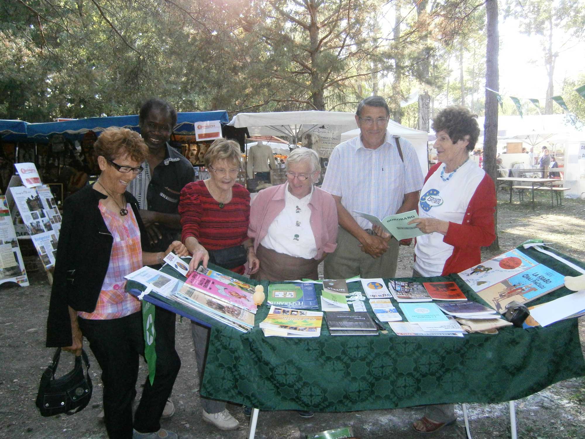 Partout, les espérantistes ont dressé leur tente et interpellé les passants. Partout, d’assez bonnes réactions, parfois des questions intéressantes. Comme l’an dernier, nous avons demandé aux visiteurs s’ils savaient en quelle langue était écrit le texte écrit sur leur T-shirt (le cas échéant) et ce qu’il signifiait. Seulement deux réponses positives... Et on voudrait nous faire croire que tout le monde parle anglais ! (Info : R. Triolle).