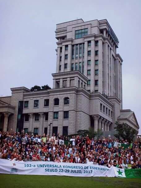 Comme il se doit, nous devons vous informer de l’actualité sportive. Match de foot entre l’équipe du congrès et l’équipe locale Dongdaemun-gu. Et pour la première fois l’équipe du congrès a gagné la coupe Zamenhof. Zamzam superstar !