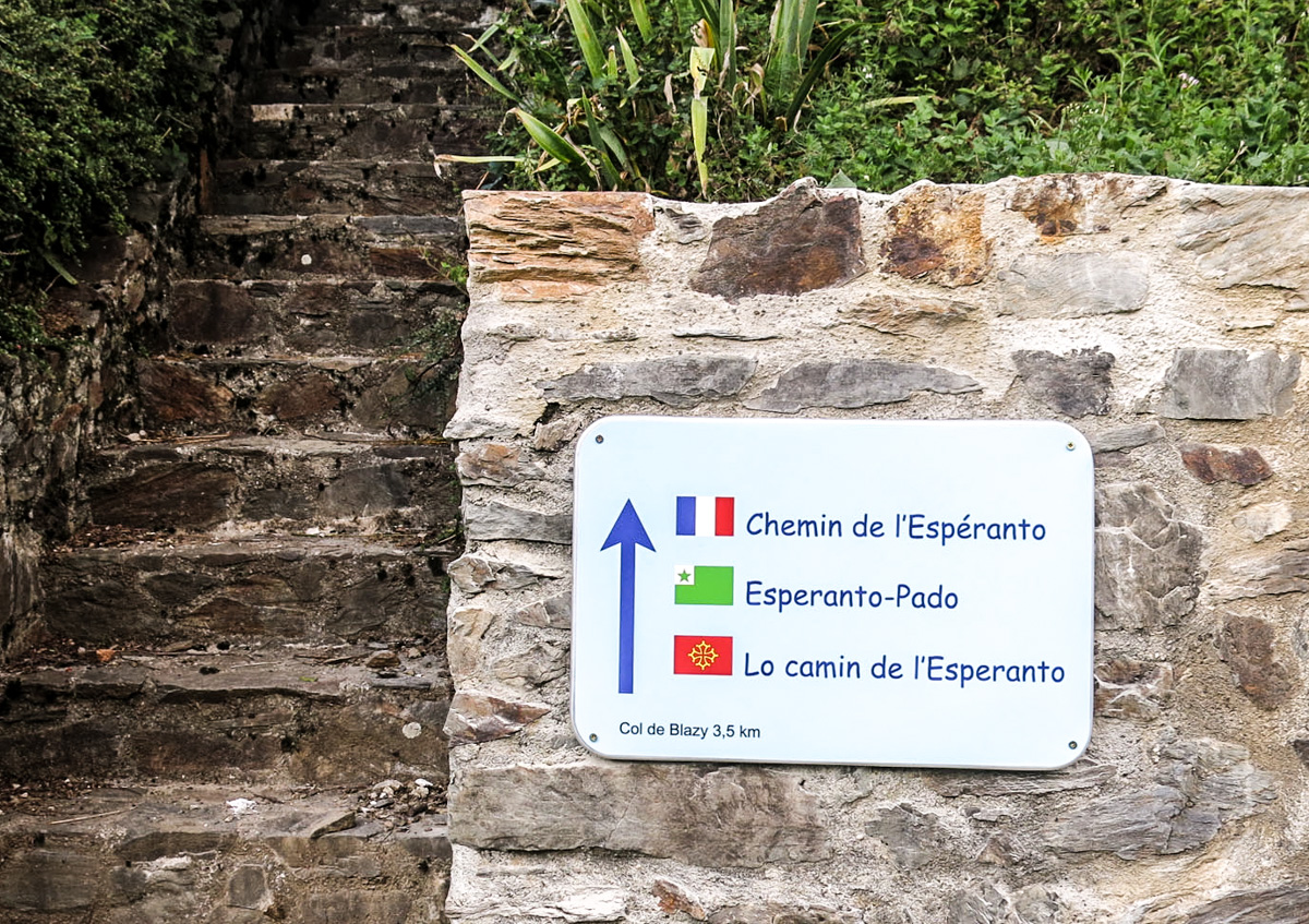 René et Nathalie BALLAGUY, espérantistes à Burret, ont proposé à la commune de baptiser « Chemin de l’Espéranto » un joli tronçon de randonnée qui va de l’église de Burret jusqu’à l’intersection avec le chemin des Sources (celui-ci menant au col de Blazy) en passant par les deux hameaux de Urjols et Raspe.
