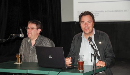 La tournée de conférences de Rainer Kurz s’est terminée le 11 octobre à Nilvange, près de Thionville, au café culturel Le Gueulard. La soirée était organisée par le Forum des Citoyens et Espéranto-Thionville. Une quinzaine de personnes étaient présentes, espérantophones et non espérantophones. Rainer Kurz est venu présenter, en espéranto (traduction en français par Thomas Cordonnier), son action en faveur de l’insertion des réfugiés accueillis en Allemagne. Rainer a créé une entreprise permettant de mettre en relation des prestataires de tous domaines grâce au site internet www.freelance-market.de par lequel les entrepreneurs peuvent recruter différents profils professionnels. À l’issue de la présentation, Rainer a répondu à de nombreuses questions sur la difficulté à faire connaître son initiative auprès des réfugiés, et sur les retours positifs des employeurs ayant recruté des réfugiés. (Info : C. Nourmont).